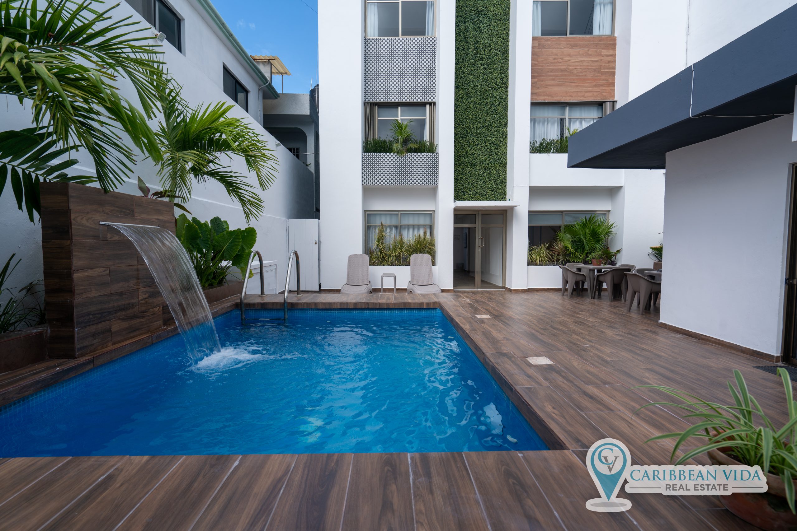 Discover this exceptional apartment building in a prime location just 2 blocks from the world famous Quinta Avenida and walking distance to the beach. This property boasts eight well-appointed apartments in a four-story building with 2 units per floor. Each unit features a kitchenette, refrigerator, comfortable beds, sofa, TV, AC unit and private bathroom. Resident manager quarters are in a separate structure featuring a studio with bathroom. The common area features a refreshing pool for guests, sunbathing area, tables and chairs to work remotely on your computer or just eat, drink and relax. The grounds of the building offer a new owner the ability to expand the number of apartments add food and beverage, create a rooftop restaurant/bar, and a yoga/meditation studio. All necessary permits and licenses are in place.