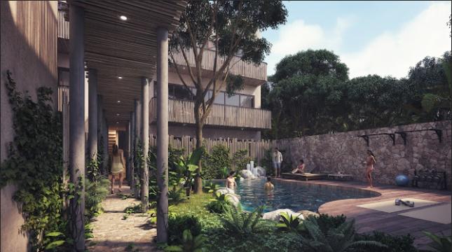 APARTMENT FOR SALE IN TULUM 1 BEDROOM WITH JOGGING TRACK 100 M JOGGING TRACK, BAR, COOLERS AND SINKS WITH MIXER, YOGA AREA.