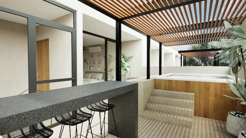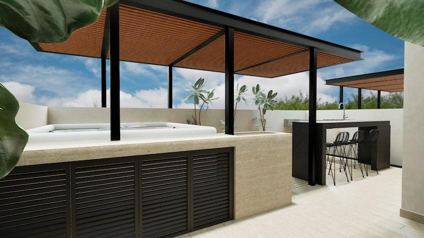 APARTMENT FOR SALE IN TULUM 1 BEDROOM WITH JOGGING TRACK 100 M JOGGING TRACK, BAR, COOLERS AND SINKS WITH MIXER, YOGA AREA.