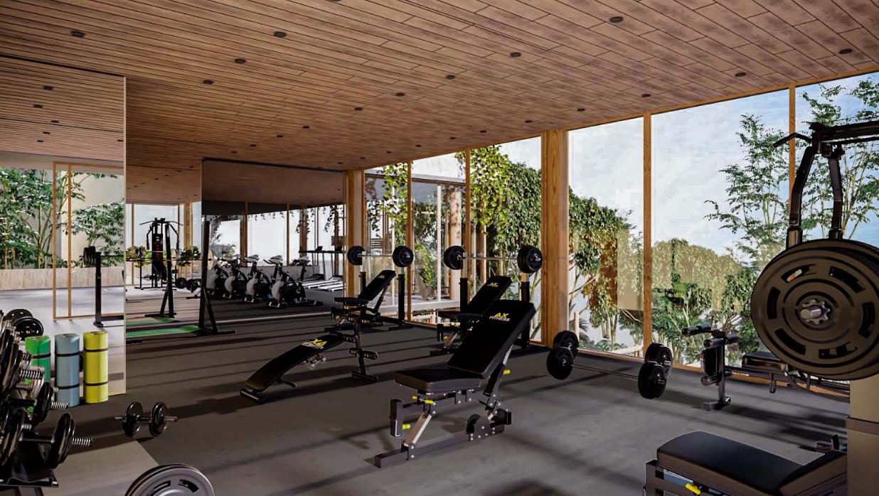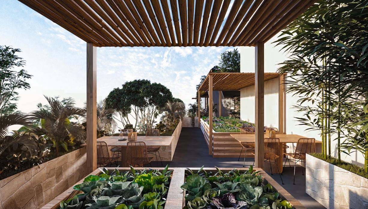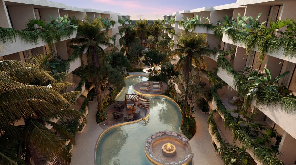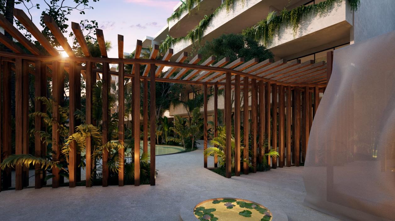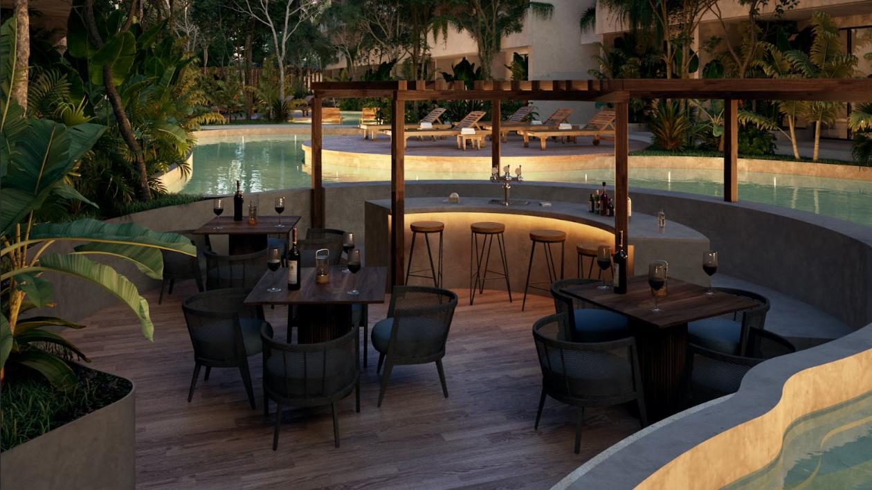APARTMENT FOR SALE IN TULUM 1 BEDROOM WITH JOGGING TRACK 100 M JOGGING TRACK, BAR, COOLERS AND SINKS WITH MIXER, YOGA AREA.