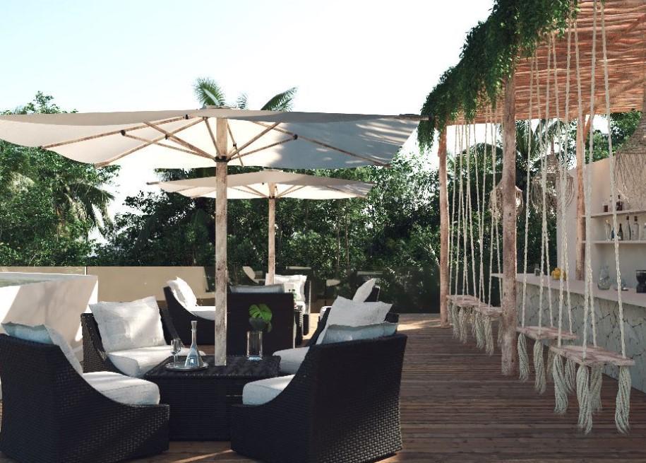 APARTMENT FOR SALE IN TULUM 1 BEDROOM WITH JOGGING TRACK 100 M JOGGING TRACK, BAR, COOLERS AND SINKS WITH MIXER, YOGA AREA.